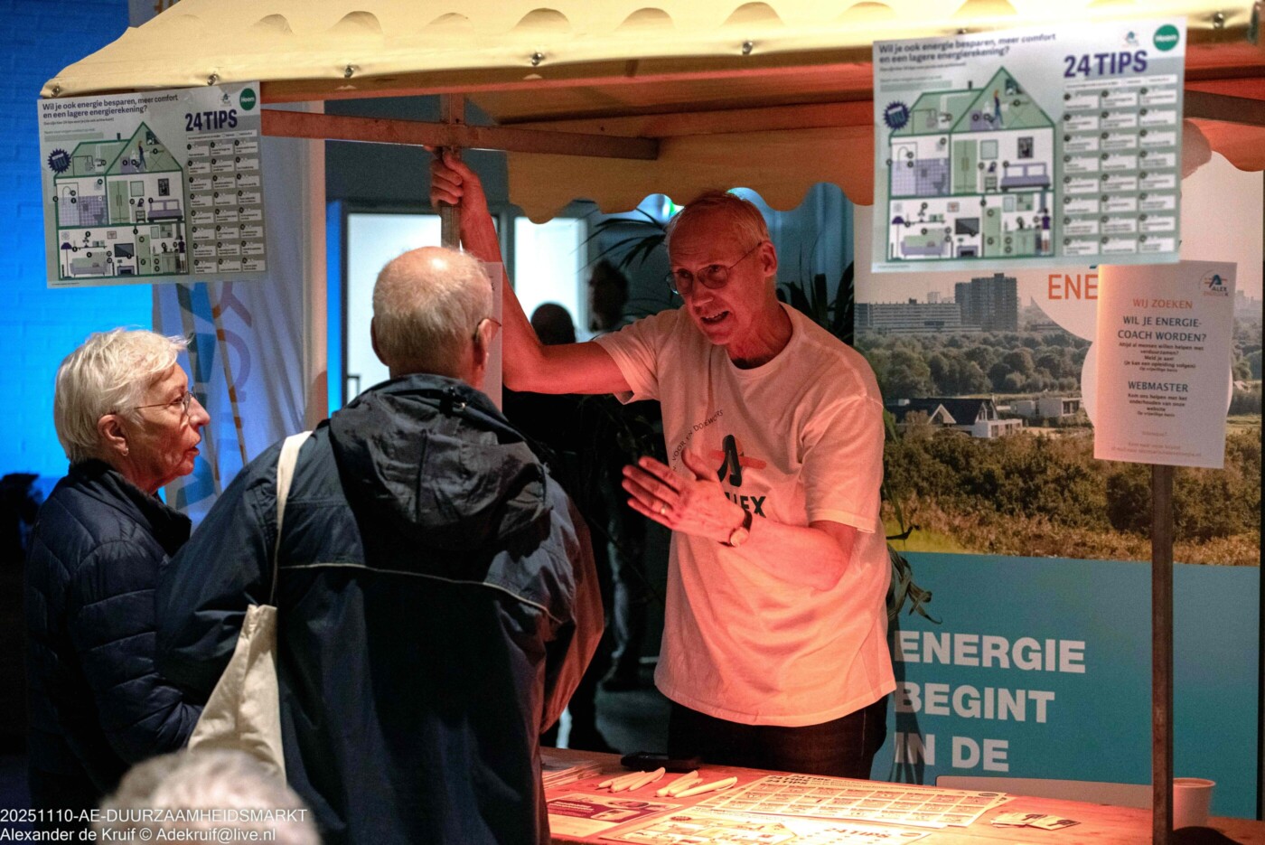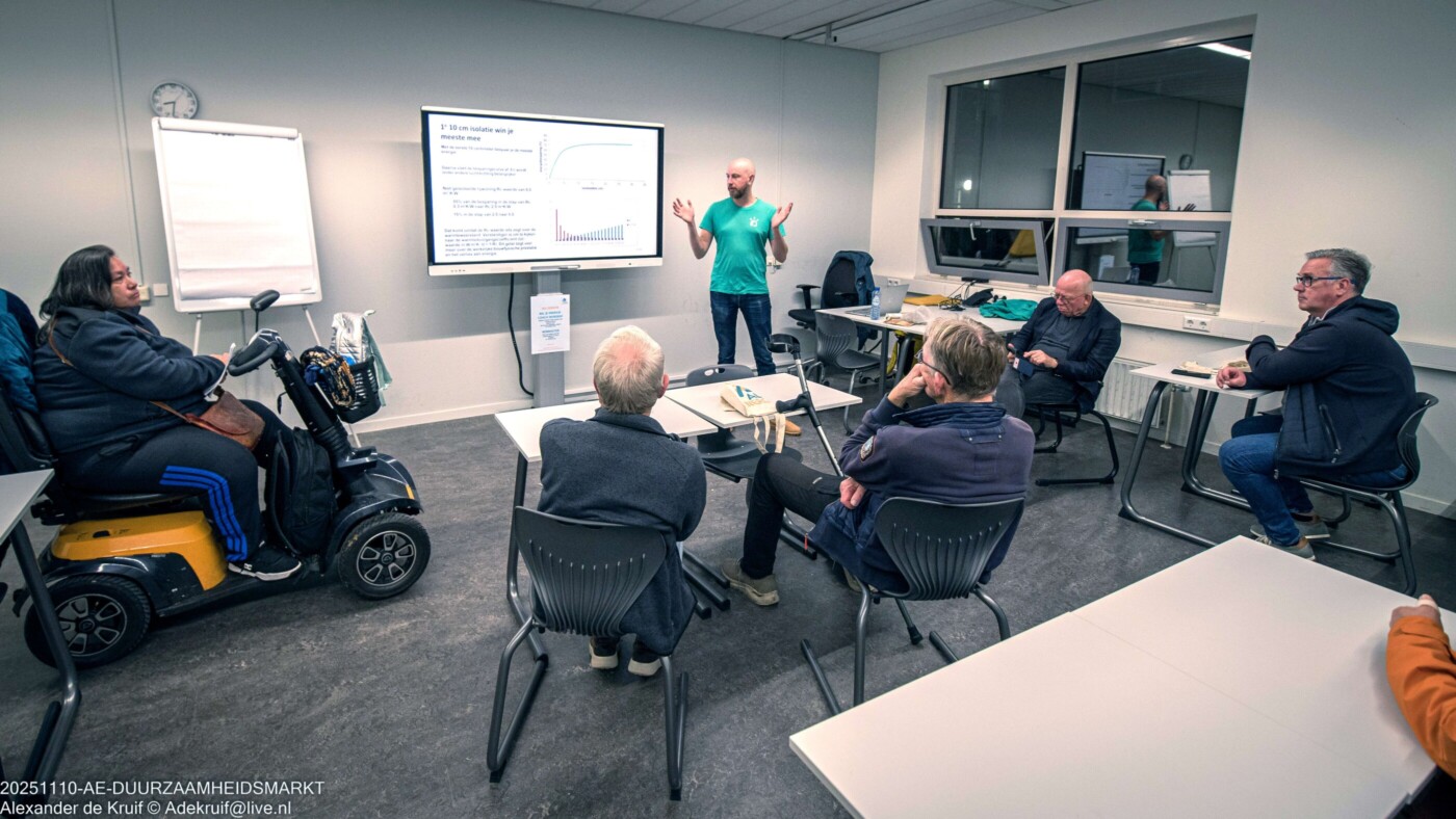 Naast de vele stands met informatie over onder andere batterijen, vloerisolatie, diverse soorten glas, warmtescan met drones en andere mogelijkheden om energie te besparen, konden de bezoekers ook infosessies met een veelheid aan onderwerpen bezoeken. Bijvoorbeeld bio-based isolatie, vloerisolatie, warmtescan met drones, batterijen en “kierenjagen”. Hiervan werd veelvuldig gebruik gemaakt.
